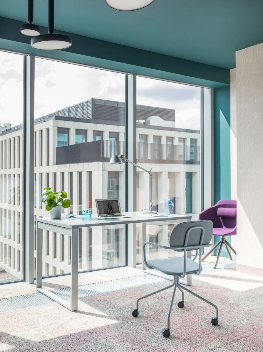Bureau OGI Q L160 avec desserte de rangement à portes coulissantes